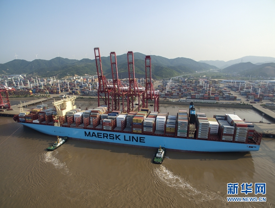 一艘货轮即将停靠宁波舟山港穿山港区集装箱码头(5月9日摄)。 新华社记者 黄宗治 摄