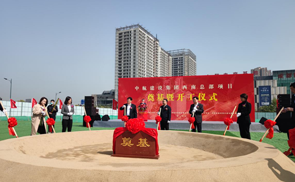 2021年3月27日上午,中航建设集团西南总部奠基暨开工仪式在成都市新都区举办。新都区区委书记许兴国,新都区副区长刘清,新都区副区长彭茚,中国建筑业协会会长、原住房城乡建设部总工程师王铁宏,集团公司党委书记、董事长陈先瑞出席仪式,并宣布项目开工。