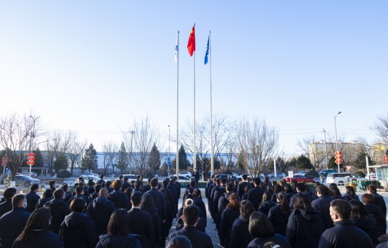 上午8时18分,升旗仪式正式开始,护旗手迈着铿锵有力的步伐,护送国旗与司旗走向升旗台,在庄严雄壮的国歌和司歌声中,鲜艳夺目的旗帜在旭日的辉映下冉冉升起,全体人员整齐列队、庄严肃立,向国旗和司旗行注目礼,展现了深切浓厚的爱国热忱和昂扬向上的精神风貌。